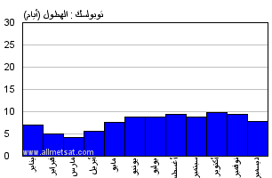 | المتوسط الشهري لعدد ساعات سطوع الشمس في اليوم الواحد. |